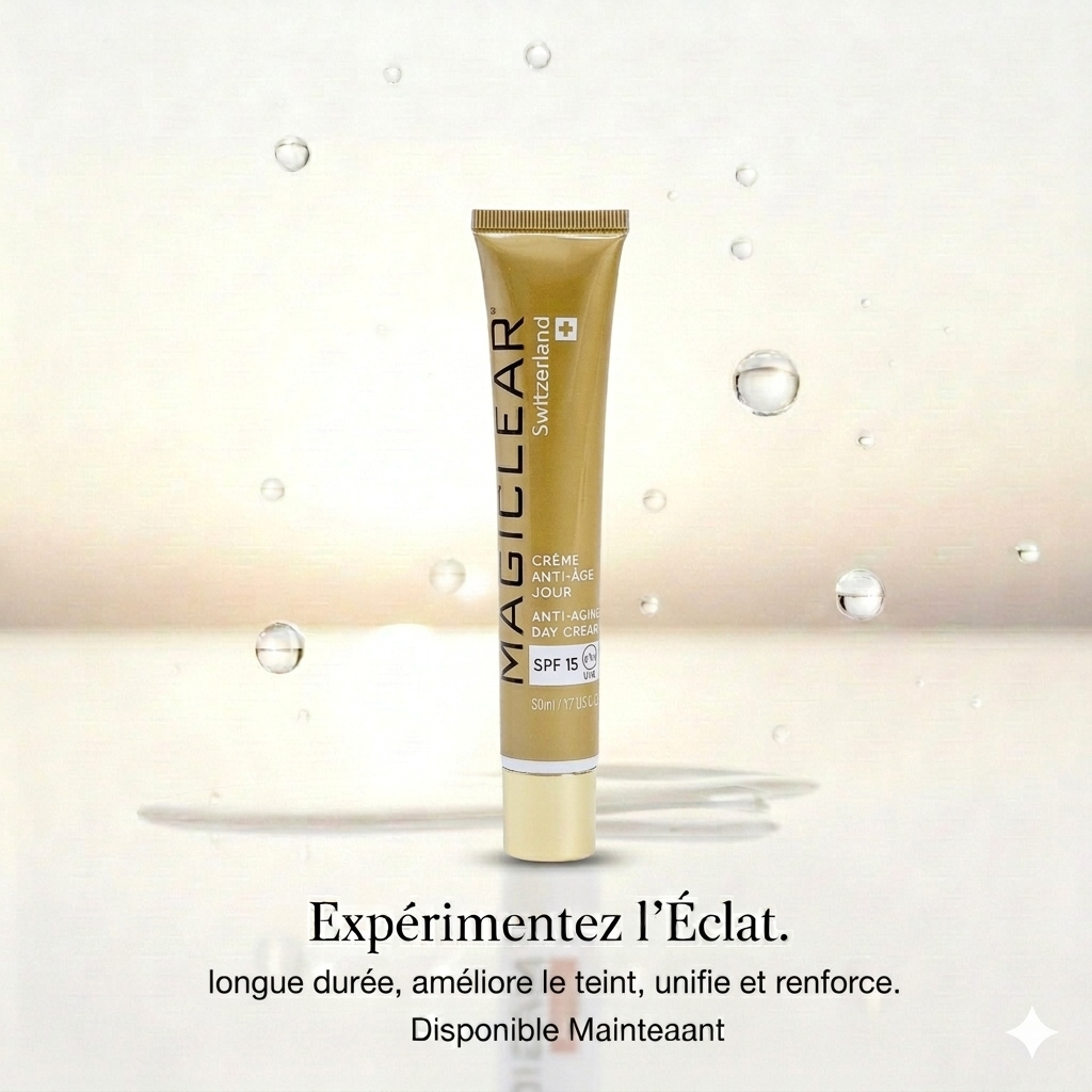 Magiclear Crème de Jour Anti-Âge SPF15 Suisse, crème visage anti-rides, protège du soleil, RivieraCosmedics France